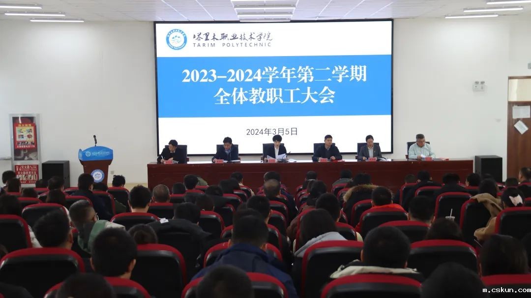 新学年,为进一步凝聚力量,谋划新篇,3月5日下午,伟德苹果客户端app下载官网召开2023-2024学年第二学期教职工大会,第一师副师长,阿拉尔市政府党组成员、副市长,伟德苹果客户端app下载官网党委书记(兼职)肖晨曦出席会议并讲话,在家的院领导、全体教职工共280余人参加会议。