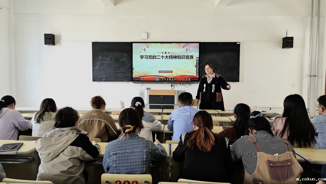 为深入学习贯彻党的二十大精神,传承和弘扬“五四”精神,2023年5月8日,教育健康学院党支部组织的“以赛促学二十大,踔厉奋发谱新篇”党的二十大精神知识竞赛初赛活动在6-203开展,教育健康学院全体教师积极参加活动。