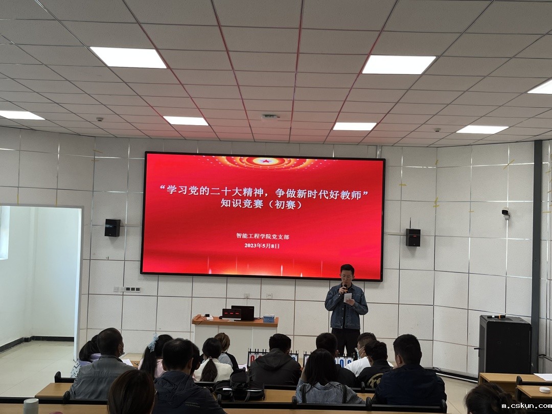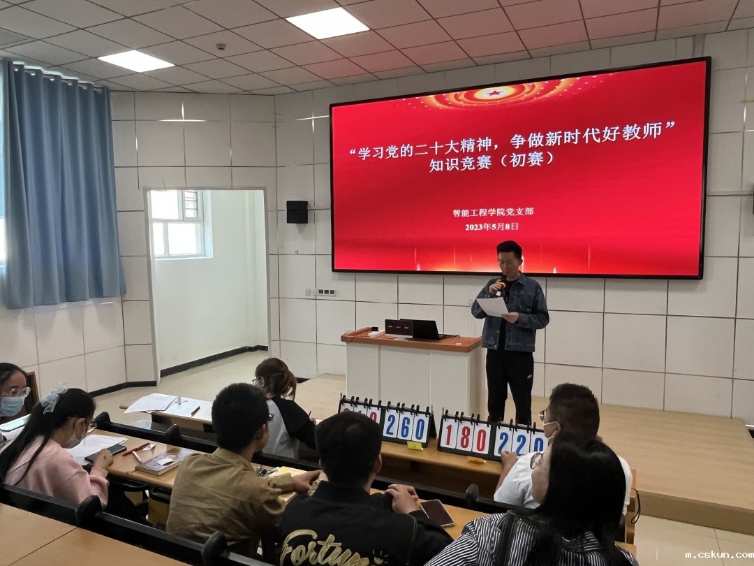 为扎实学习宣传贯彻党的二十大精神,推进学院教育教学工作高质量发展。2023年5月8日中午15:00智能工程学院现组织开展“学习党的二十大精神,争做新时代好教师”为主题,在智能工程学院3-111阶梯教室举行了知识竞赛(初赛)活动。此次活动由党支部书记李银季,童高鹏,徐博文担任裁判,由智能工程学院教学秘书刘江主持,支部全体党员及智能工程学院全体教师参加。