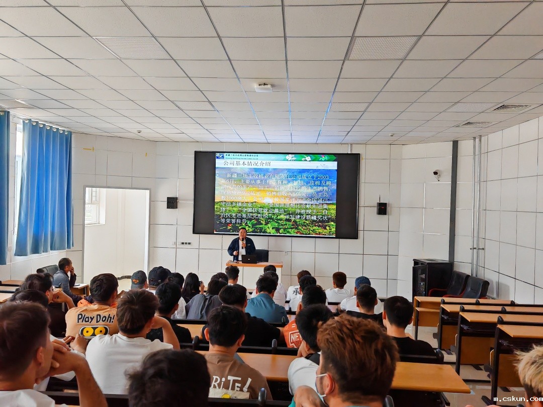 随后新疆三场丰收棉业有限责任公司杨经理就企业发展史、所获荣誉、经营现状、未来发展等方面对企业进行了介绍。然后,同学们就介绍过程中所产生的一些疑问一一做出了提问,杨经理耐心的做出了解答。最后,杨经理还邀请老师和同学们前往企业进行实地考察,进一步增进对企业的了解。