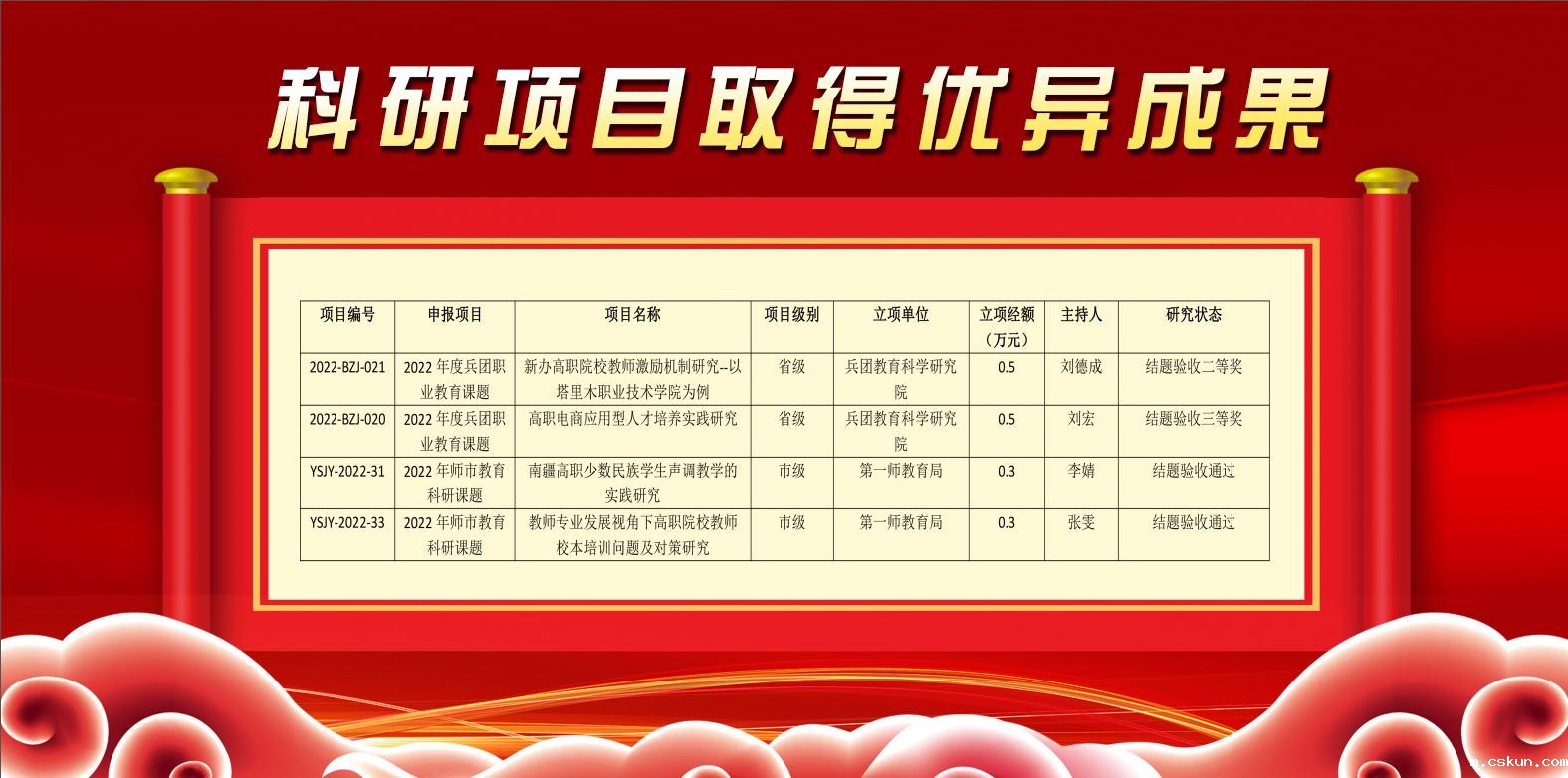2022年立项的兵团职业教育研究课题和第一师教科研课题均通过验收,完成结题。
