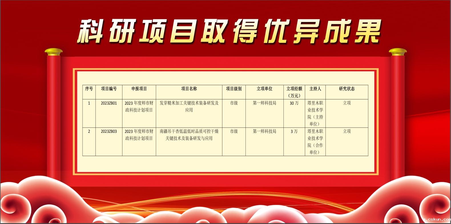 第一师科技局公布2023年度师市财政科技计划项目立项名单,我校作为主持单位和合作单位分别获得立项。