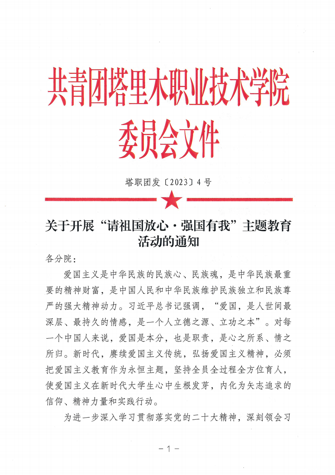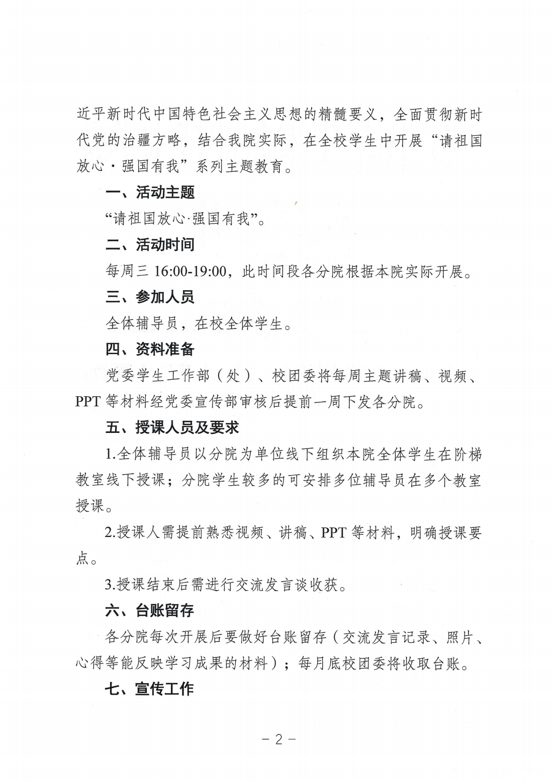 关于开展“请祖国放心·强国有我”主题教育活动的通知