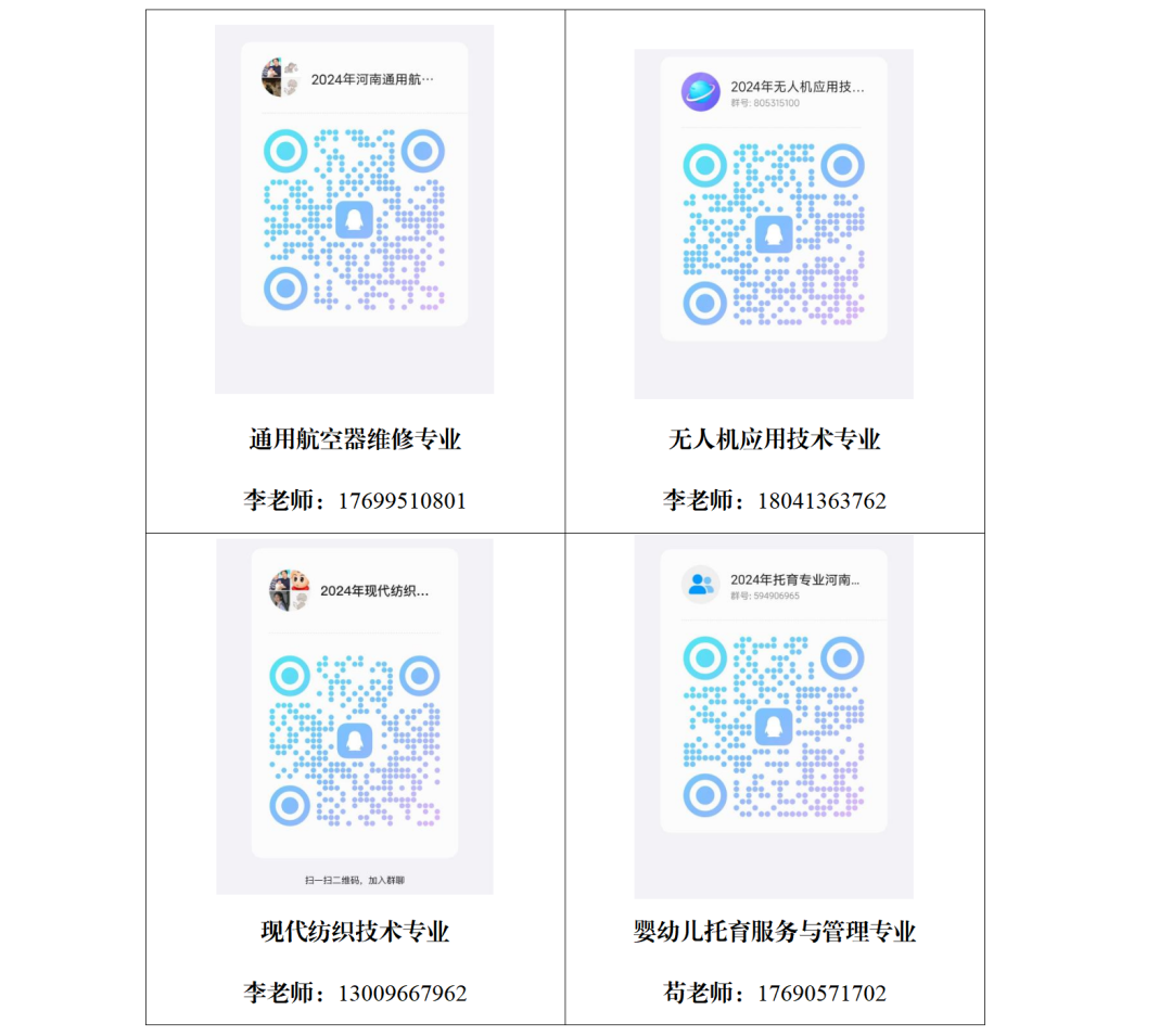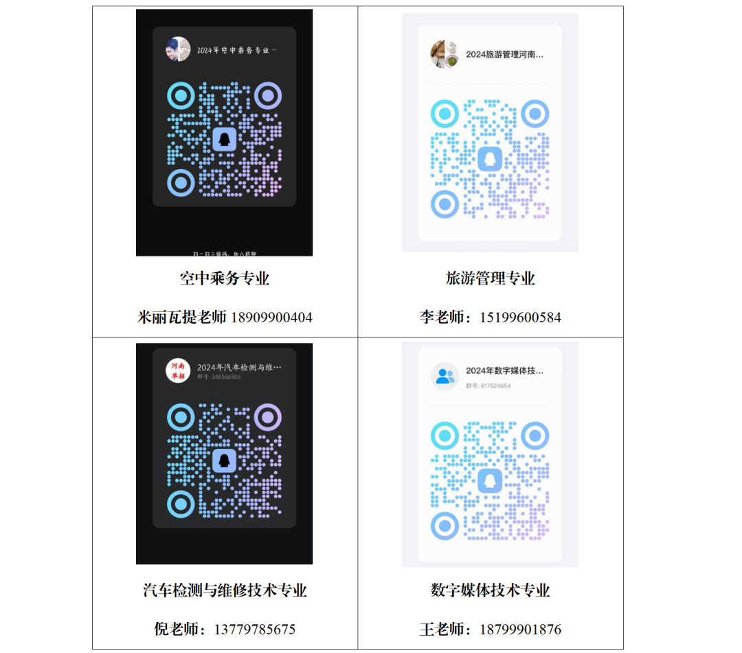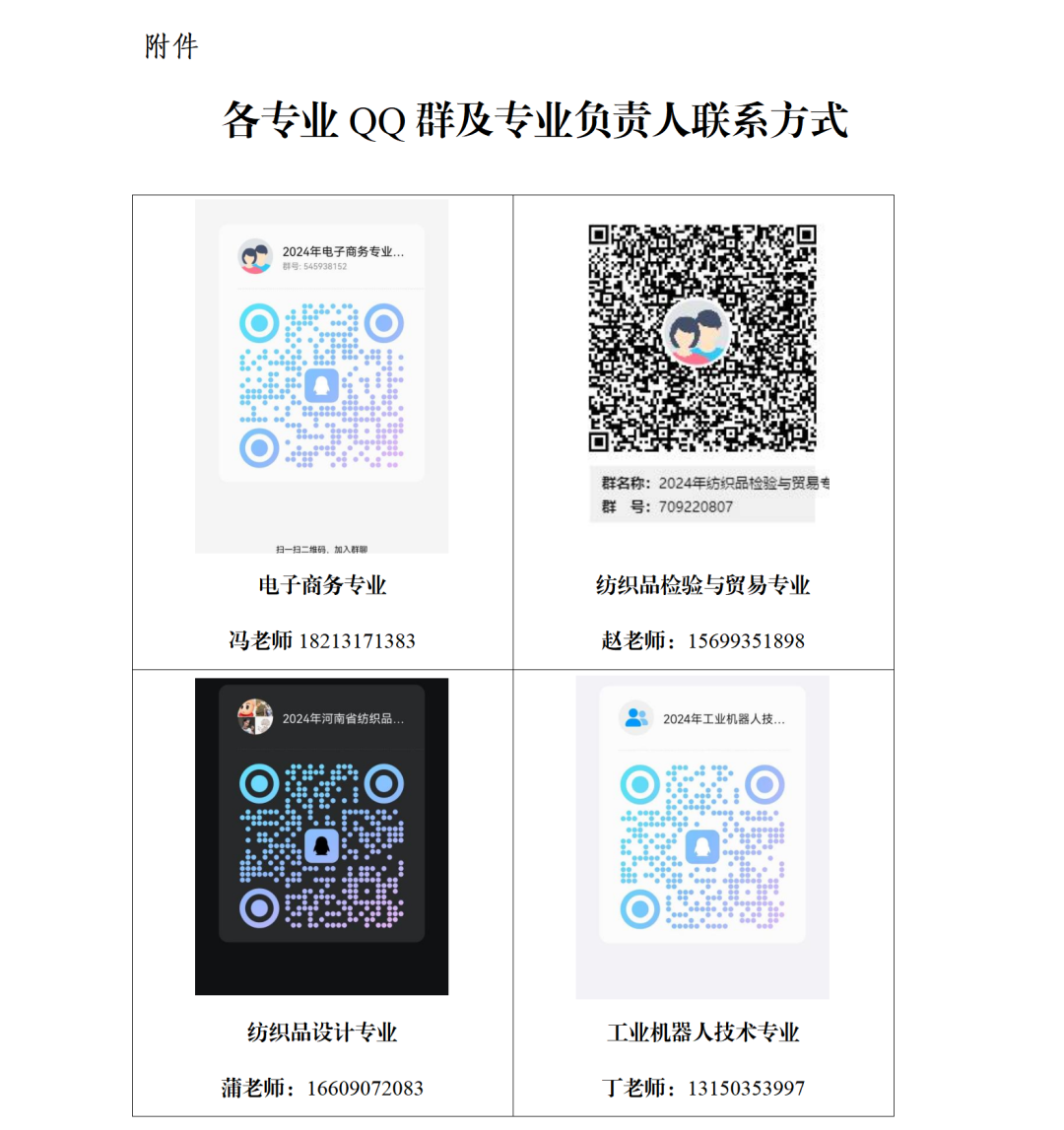 各专业负责人联系方式参见附件,若在加群过程中出现错误可联系对应专业负责人(入群备注验证信息:考生类别XX省-姓名-联系方式)。