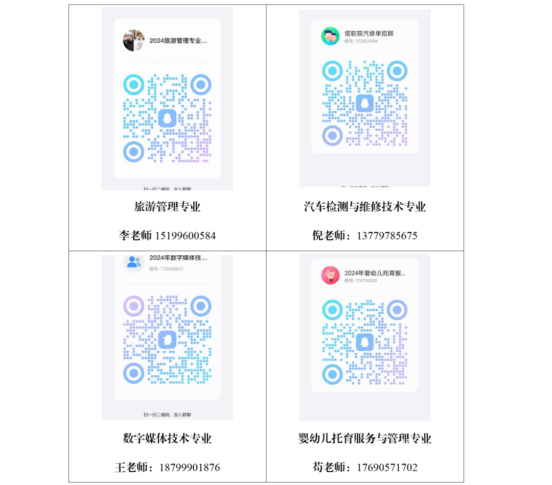 各专业负责人联系方式参见附件1,若在加群过程中出现错误可联系对应专业负责人(入群备注验证信息:XX省-姓名-联系方式)。