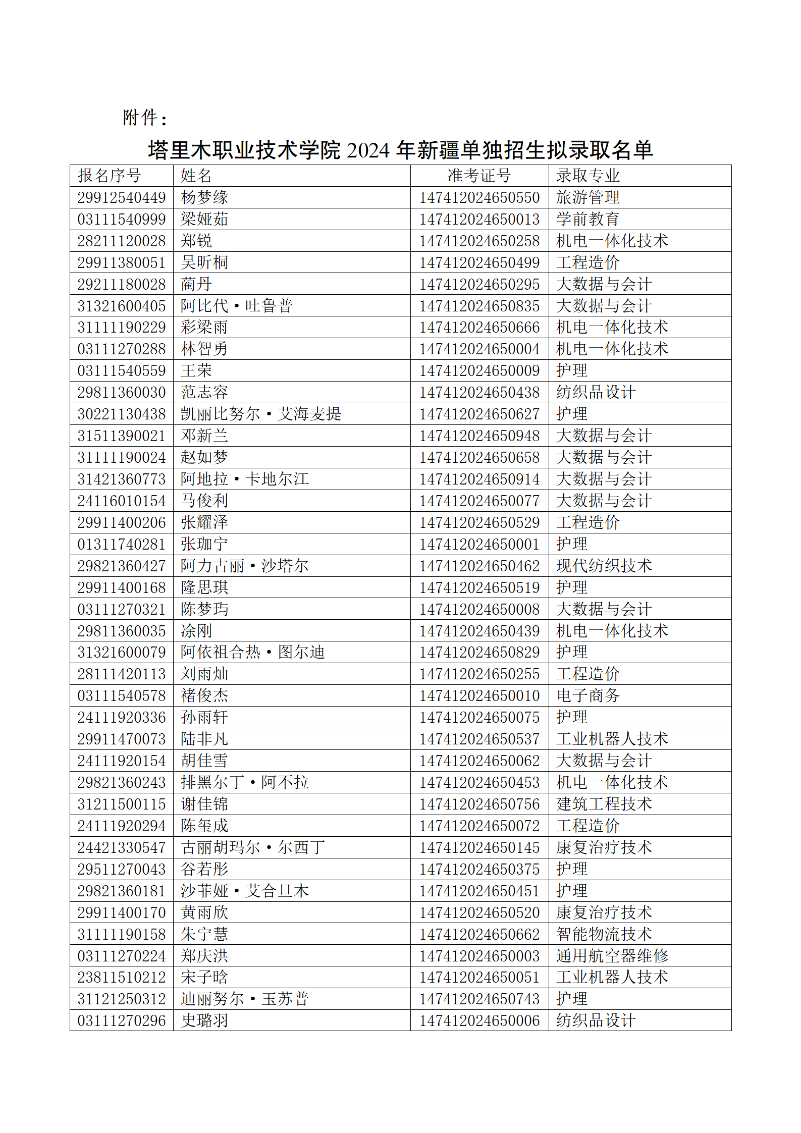 附件.伟德苹果客户端app下载官网2024年新疆单独招生拟录取名单