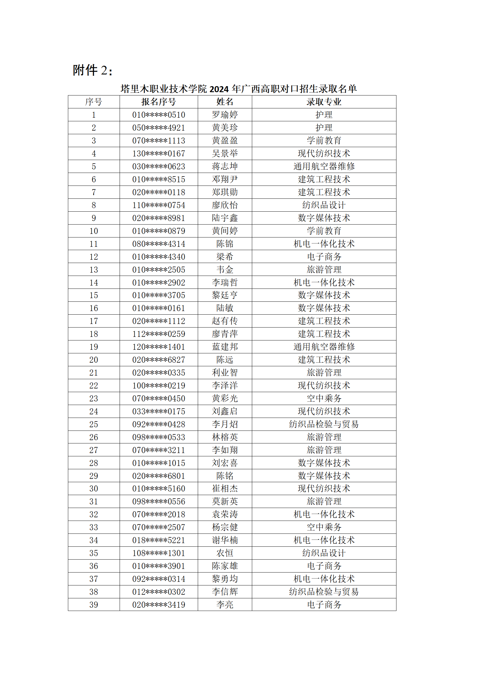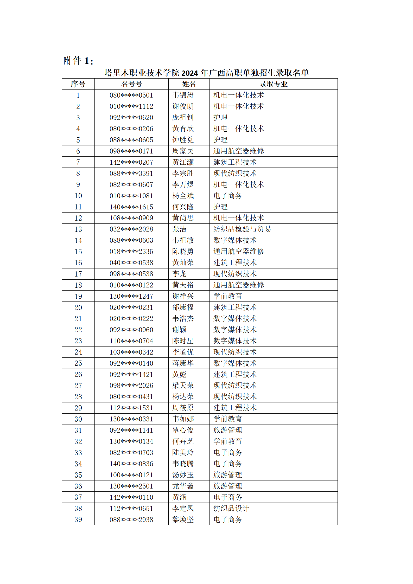 附件1.伟德苹果客户端app下载官网2024年广西高职单独招生录取名单
