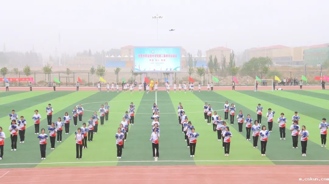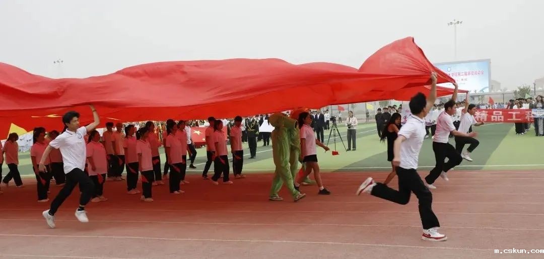 开幕式上举行庄严的升国旗仪式。随后,学院党委副书记、院长周志国致辞,强调运动会是对学院体育工作的一次大检阅,希望学生在比赛中强健体魄、积极进取,展现出良好的体育精神和团队精神,并预祝本次运动会取得圆满成功。运动员代表和裁判员代表相继宣誓,表示将严格遵守、执行比赛纪律和竞赛规则,以优异的成绩向赛会献礼。最后,各分院带来了精彩的团体操表演,赢得在场师生阵阵掌声和喝彩。
