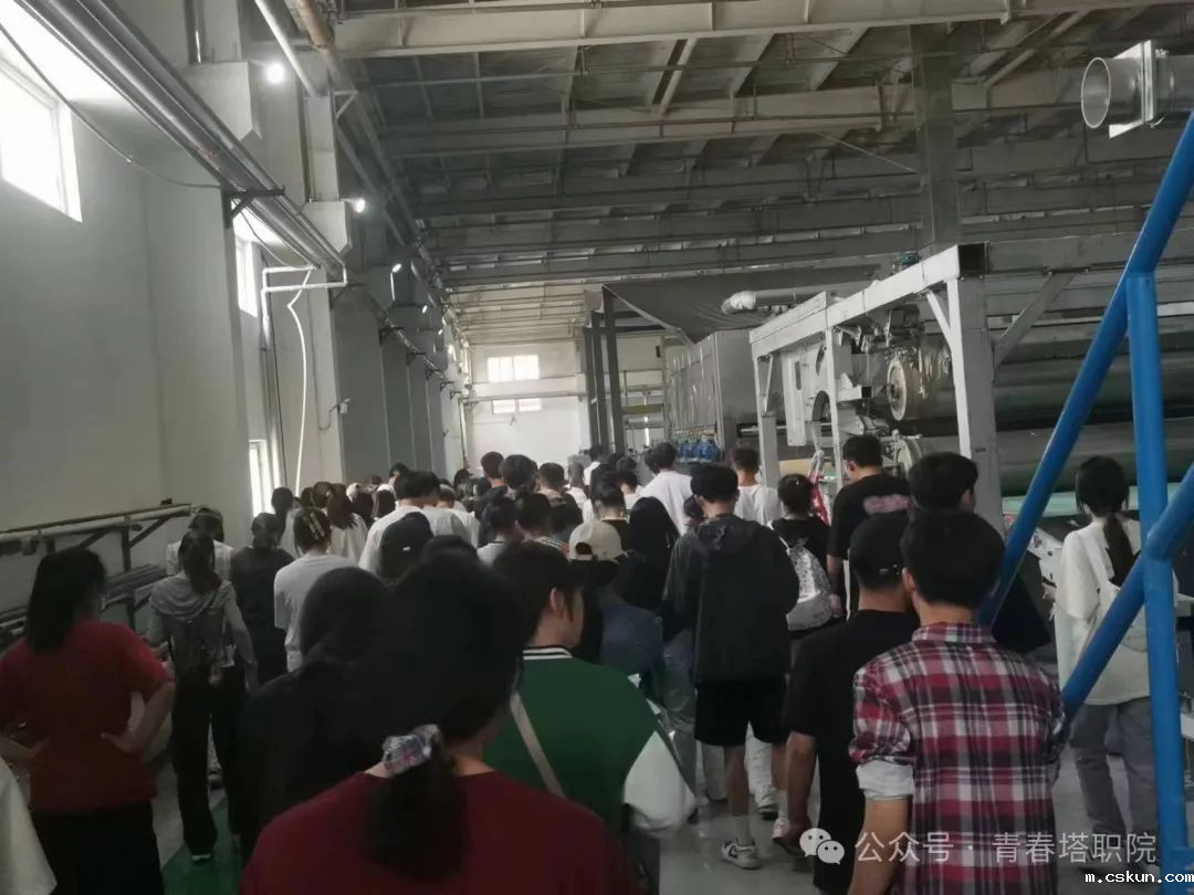 车间内,在企业专家的带领下同学们仔细学习着非织造面料的生产工艺流程,企业专家详细地介绍了非织造材料从原料喂入—成网—加固—后整理,结合车间工艺生产流程重点讲解了非织造技术的基本原理。同学们认真学习后,纷纷表示对此产品非常感兴趣,想进一步也了解相关其他类产品的生产形成过程。