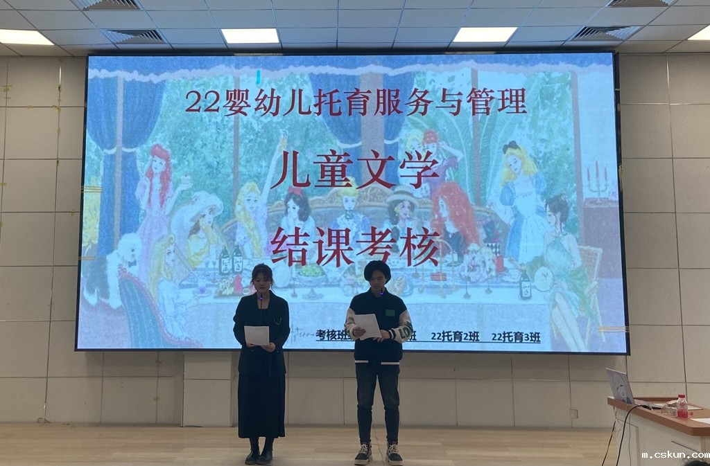 2023年12月26日16时,教育健康学院婴幼儿托育服务与管理专业22级全体学生于四号教学楼4楼举行了《儿童文学》课程的期末考核汇报表演,教育健康学院院长胡伟玲,教学秘书谌燕辉,托育教研室负责人苟娜,专业教师杨鹏、团委负责人李浩出席本次活动。
