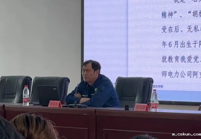 在报告会上,总工程师用质朴的语言为广大师生讲述了他感人故事。程金刚毕业于西安交通大学热能动力专业,参加工作二十多年来,他始终兢兢业业,节假日期间总是坚守在平凡岗位上,奔忙在基层生产运行一线,保障师市辖区供电服务,哪里就有他忙碌的身影。他以一流的工作业绩和良好的群众口碑,展现了一名优秀共产党员的风采。